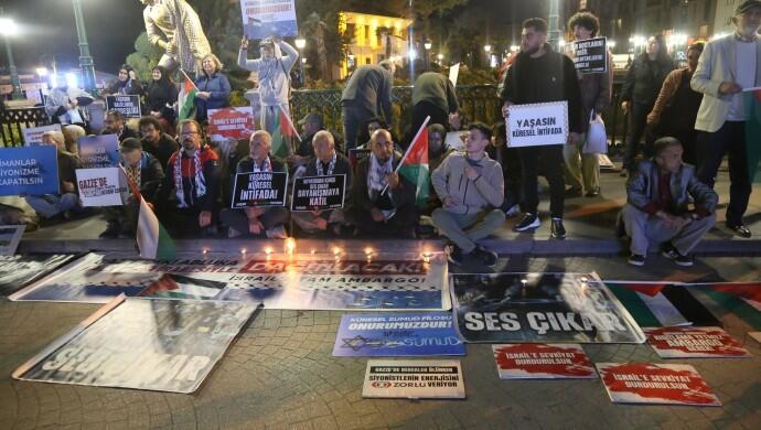 Eskişehir Filistin ile Dayanışma Platformu, Sumud Vicdan Filosu’na destek amacıyla Köprübaşı’nda oturma eylemi düzenledi. İsrail’in müdahale sahası ilan ettiği bölgeye giren Sumud Filosu’na destek için gerçekleştirilen eylemde mumlar yakıldı, “Yaşasın küresel intifada” ve “Limanlar Siyonizme kapatılsın” dövizleri taşındı. Katılımcılar ayrıca “Katil İsrail işbirlikçi AKP” ve “Yaşasın halkların kardeşliği” sloganları attı.