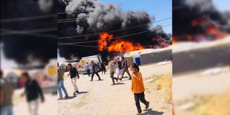 Êzidîlerin kaldığı kampta yangın: 2 kadın ağır yaralandı
