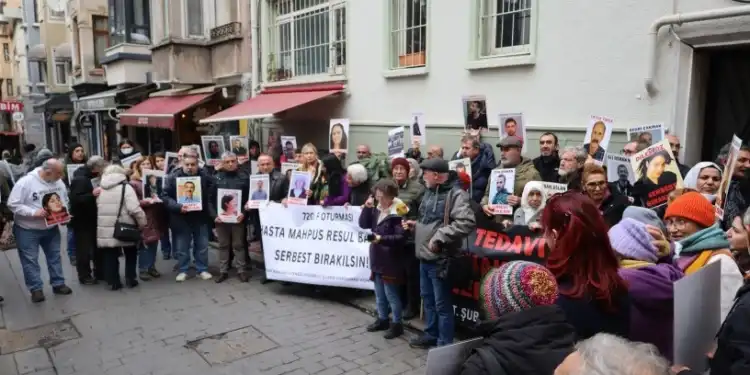 İnsan Hakları Derneği (İHD) İstanbul Şubesi Hapishane Komisyonu, her hafta düzenledikleri “F oturması” eyleminin 720’ncisini Beyoğlu’nda bulunan dernek binası önünde gerçekleştirdi. Bu haftaki eylemde, Düzce T Tipi Kapalı Cezaevinde tutulan tutsak Resul Baltacı’nın durumuna dikkat çekildi. “Tedavi haktır engellenemez” ve “Hasta tutsak Resul Baltacı serbest bırakılsın” pankartlarının açıldığı açıklamada sık sık, “Hasta tutsaklar serbest bırakılsın” ve “Tecrit öldürür dayanışma yaşatır” sloganları atıldı. Açıklamaya, çok sayıda hak savunucusu destek verdi. Basın açıklamasını İHD üyesi Cihan Aslan okudu.