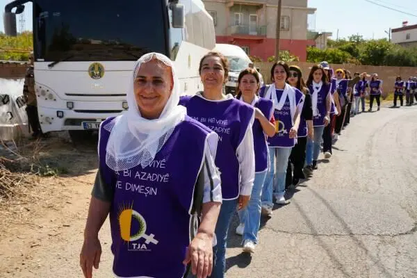 Bu isimlerden biri de 2016’da yapılan özyönetim döneminde 5 Ocak’ta Sêvê Demir ve Pakize Nayır ile birlikte Silopya’da katledilen Fatma Uyar’ın annesi Hatice Uyar. Hatice Uyar, daha fazla katliamın yaşanmaması için yürüyüşe katıldığını dile getirirken, devletin bu süreçte geçmiş katliamlarla yüzleşmesi gerektiği çağrısında bulundu. Hatice Uyar, “Bütün bedel verenler ve acı çekenler bu süreçte elini taşın altına koymalı ve sorumluluk almalı. Bu barış hepimiz için şart” dedi.