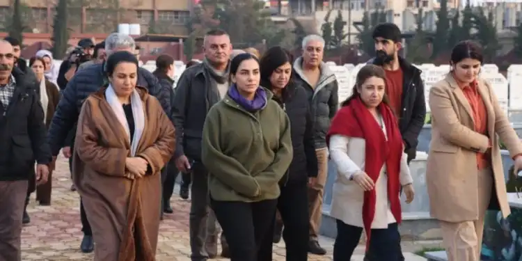 Heyet üyeleri, DAİŞ’e karşı yürütülen mücadelede ve Türkiye saldırılarına karşı savunmada şehit düşen YPJ, YPG ve DSG savaşçılarının mezarlarını ziyaret etti.