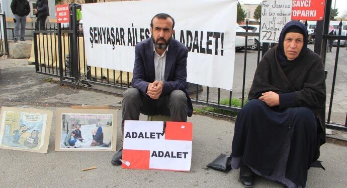 Pirsûs’tan Urfa Adliyesi önüne gelen Şenyaşar ailesi, “Şenyaşar ailesi için Adalet” yazılı pankartın önünde nöbeti başlattı.