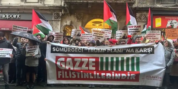 Trump’ın Gazze planını protesto eden Filistin Eylem Komitesi, ‘Türkiye’de iktidar, ABD’nin Gazze’yi kontrol etme planını destekliyor ve Filistin halkının iradesini ve tarihsel haklarını yok sayanlar arasında yer alıyor’ dedi