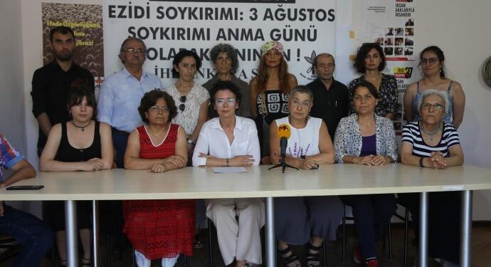 İnsan Hakları Derneği (İHD) Ankara Şubesi, DAİŞ’in Êzidîlere yönelik 2014 yılında gerçekleştirdiği soykırımın 9’üncü yıldönümüne ilişkin dernek binasında basın toplantısı düzenledi. Toplantıya, Yeşiller ve Sol Gelecek Partisi (Yeşil Sol Parti) İstanbul Milletvekili Özgül Saki, Türk Tabipler Birliği (TTB) Merkez Konseyi Başkanı Şebnem Korur Fincancı ve Özgürlük için Hukukçular Derneği (ÖHD) üyesi avukatlar katıldı. Açıklamanın yapıldığı salonda, “Ezidi soykırımı: 3 Ağustos soykırımı anma günü olarak tanınsın” pankartı asıldı.