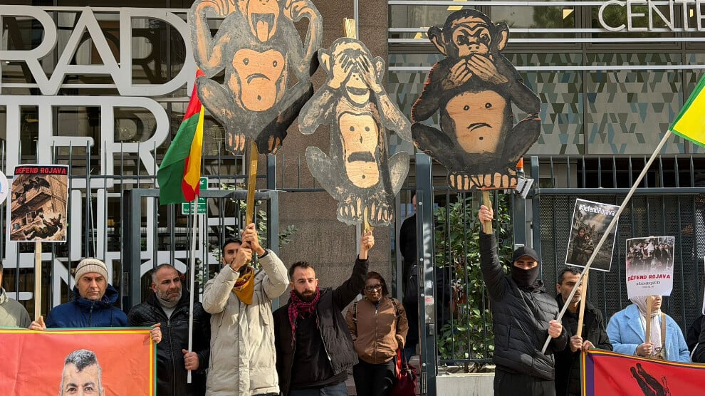 Marsilya’da yaşayan Kürtler, Rojava’da Kürt halkına yönelik soykırım saldırılarını Avrupa Birliği Parlamentosu Marsilya Temsilciliği önünde protesto ediyor