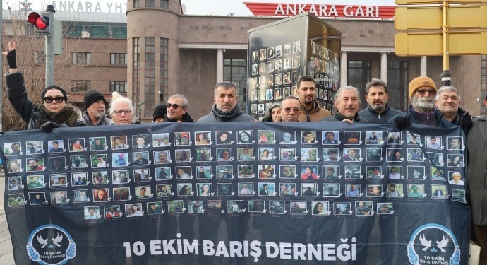 Ankara’da 10 Ekim 2015’te Emek, Barış ve Demokrasi Mitingi’ne yönelik DAİŞ saldırısında yaşamını yitirenler, katliamın 123’üncü ayında Ankara Garı önünde anıldı.