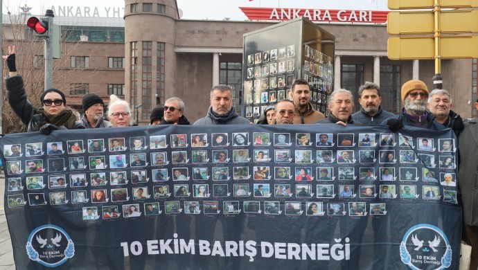 Ankara’da 10 Ekim 2015’te Emek, Barış ve Demokrasi Mitingi’ne yönelik DAİŞ saldırısında yaşamını yitirenler, katliamın 123’üncü ayında Ankara Garı önünde anıldı.