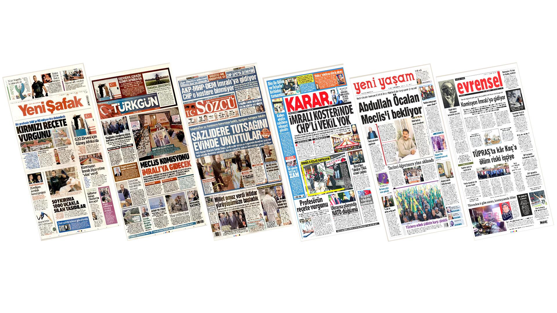 Meclis’te kurulan Komisyonun tarihi bir karar olarak aldığı Abdullah Öcalan ile görüşme kararını gazeteler manşetten görürken, iktidara yakın medya ise sessiz kaldı