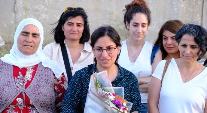 Cezaevinden çıkan gazeteci Safiye Alağaş meslektaşları tarafından çiçeklerle karşılandı. Alağaş, ‘Özgür basın ve Kürt kadın gazeteci olarak işime devam edeceğim’ dedi