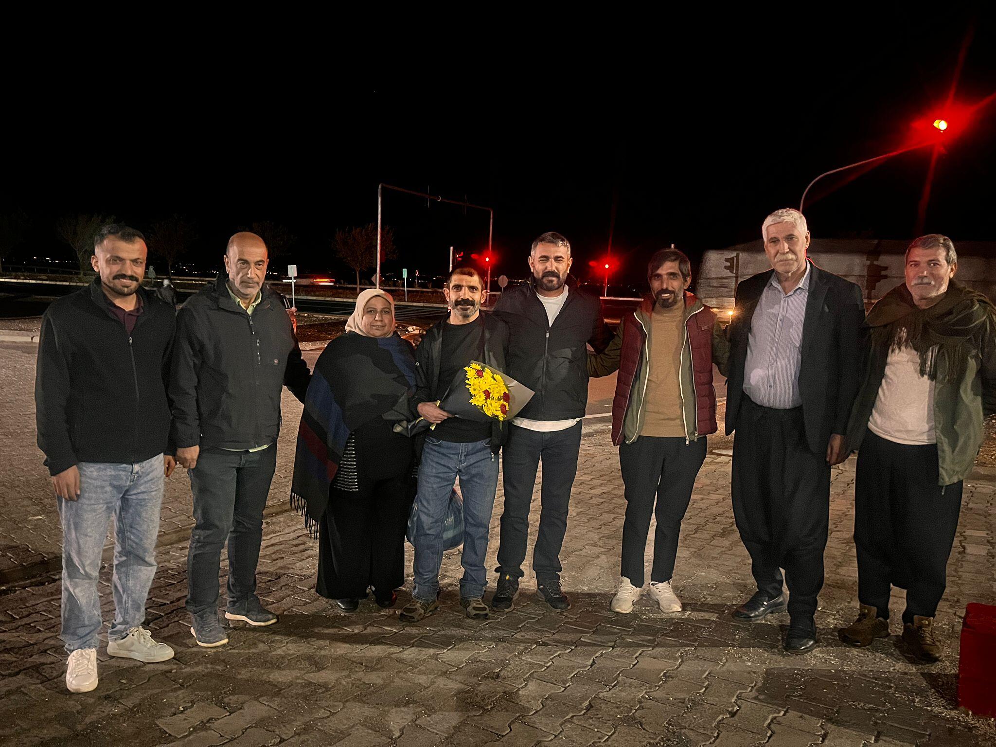 Cezaevi önünde Bayram’ı Dicle Fırat Gazeteciler Derneği (DFG), Özgürlük İçin Hukukçular Derneği (ÖHD), Kadim Topraklarda Yakınlarını Kaybeden Aileler ile Yardımlaşma Dayanışma ve Kültür Derneği (KATDER), Tutsak ve Hükümlü Aileleri ile Yardımlaşma ve Dayanışma Derneği (TUAY-DER) üyeleri ile ailesi karşıladı.