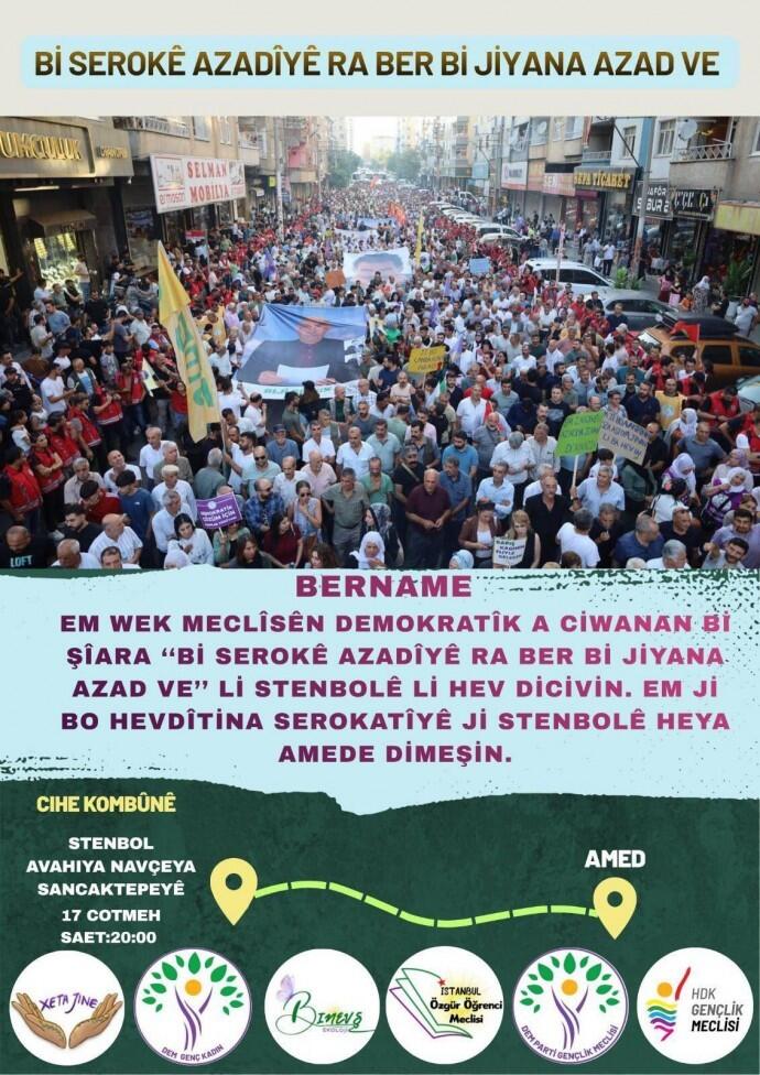 Yurtsever Gençlik Platformu, 18 Ekim’de “Özgürlüğün Önderiyle Özgür Yaşama” şiarıyla Amed’de yürüyüş gerçekleştirecek. Bu kapsamda gençler yapacakları yürüyüşün hazırlıklarına devam ediyor. İstanbul’da ise Demokratik Gençlik Meclisleri’nden gençler de, Amed’deki yürüyüşe katılmak için yarın İstanbul’un Sancaktepe ilçesinde kısa bir yürüyüşün ardından araçlarla Amed’e doğru yola çıkacak.