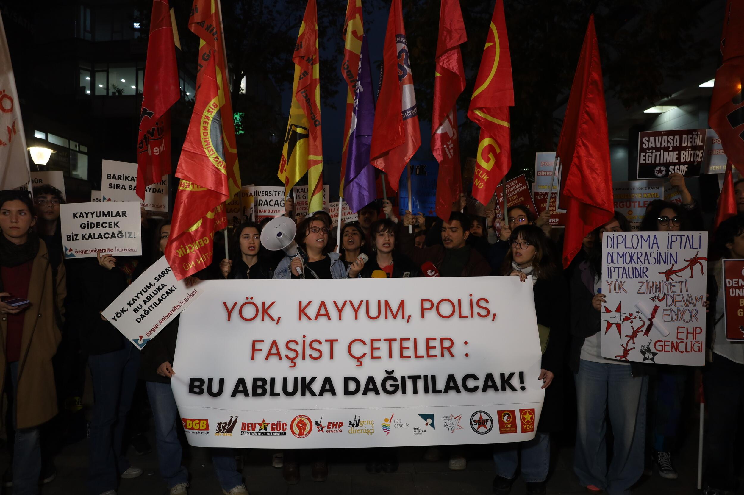 Ankara’daki gençlik örgütleri, Yüksek Öğretim Kurulu’nun (YÖK) kuruluş yıldönümüne ilişkin Çankaya Belediyesi önünde basın açıklaması yaptı.