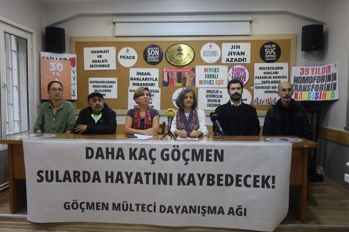 Göçmen Mülteci Dayanışma Ağı, 24 Ekim gecesi Muğla’nın Bodrum açıklarında batan bir teknede 17 mültecinin hayatını kaybettiği olaya dair İstanbul Beyoğlu’nda bulunan İnsan Hakları Derneği (İHD) binasında basın toplantısı düzenledi. Çok sayıda kişinin katıldığı toplantıda, basın metnini Göçmen Mülteci Dayanışma Ağı üyesi Yıldız Önen okudu.