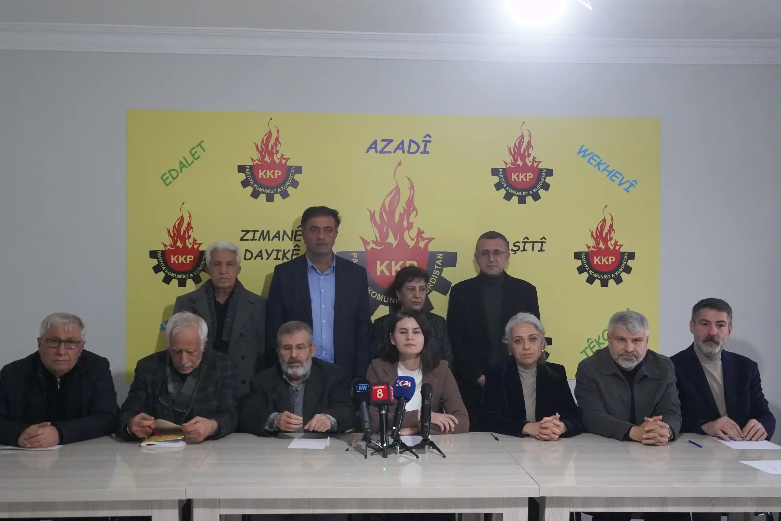 Demokratik Bölgeler Partisi (DBP), Halkların Eşitlik ve Demokrasi Partisi (DEM Parti), İnsan ve Özgürlük Partisi (PİA), Azadi Partisi, Devrimci Demokratik Kültür Derneği (DDKD) ile Kürdistan Komünist Partisi (KKP), Demokratik Birlik İnisiyatifi öncülüğünde Ulusal Birlik çalışmaları kapsamında açıklama yaptı. KKP binasında yapılan açıklamaya, katılımcı partilerin temsilcileri ve İnisiyatif üyeleri katıldı.