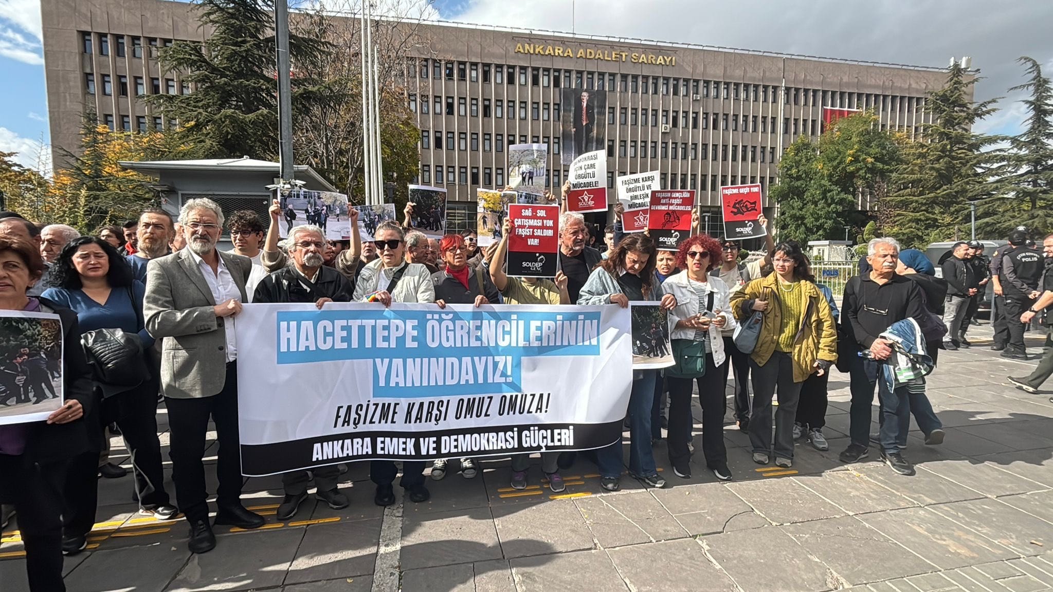 Ankara Emek ve Demokrasi Güçleri, Hacettepe Üniversitesi’nde sol, sosyalist ve demokratik görüşlü öğrencilere yönelik ırkçı saldırıları Sıhhiye Adliyesi önünde protesto etti.