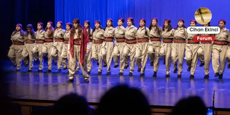 Kalabalık oyuncu kadrosuna rağmen sahnede kaos yoktur. Aksine, dikkat çekici bir kompozisyon ve kontrol hâkimdir. Kürt halk danslarının koreografik olarak kullanımı ise süs değil, anlatının parçası hâline gelmiş. Bu anlamda, uzun yıllardır daha klasik ve tekrar eden rejilerle ilerleyen DBŞT pratiği içinde bu sahneleme açıkça özgün bir sıçrama.