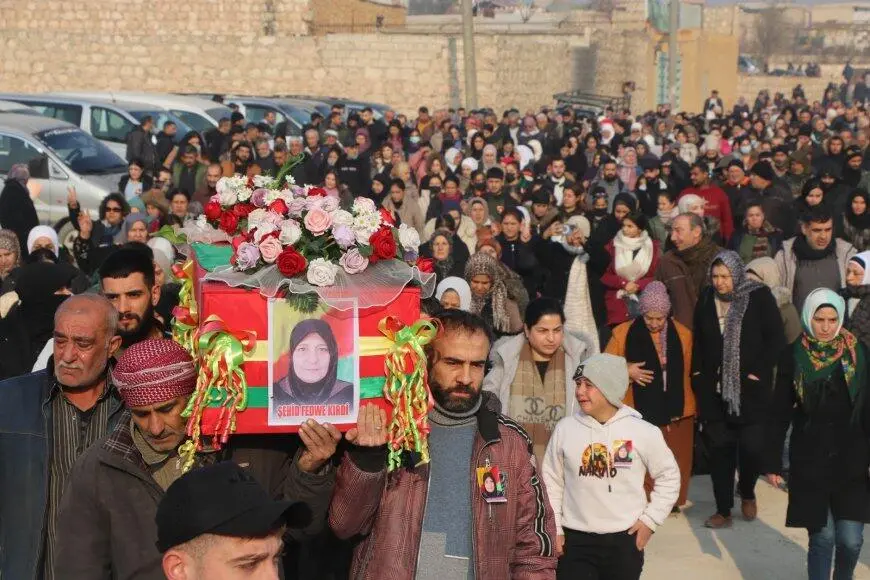 Geçici Şam Yönetimi’ne bağlı güçlerin Şêxmeqsûd ve Eşrefiyê mahallelerine yönelik saldırısında katledilen 57 yaşındaki Fedwa Mihemed El Kurdî, binlerce kişi tarafından son yolculuğuna uğurlandı