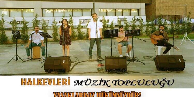 Halkevi Müzik Topluluğu, toplumsal yaşantıyı kendi kurallarına göre şekillendirmek isteyen AKP iktidarının, halktan yana sanat anlayışına yönelik saldırılarını ve konser yasaklarını günden güne artırdığını belirtti.