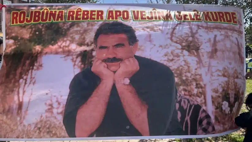 Yöresel kıyafetler ve sarı, kırmızı, yeşil renklerle alanı dolduran binler, “Bijî Serok Apo”, “Rojbûna te pîroz be ey Serok Apo” sloganları attı.