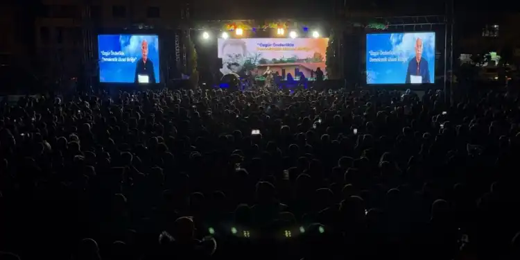 DBP Eş Genel Başkanı Çiğdem Kılıçgün Uçar ise Kürtçe’nin Kirmançkî lehçesiyle Kürt Halk Önderi Abdullah Öcalan’ın doğum gününü kutlayarak konuşmasına başladı. “Bize bu sahneyi kurdurtan bize Kürtçe konuşturan Önder Abdullah Öcalan ve mücadele arkadaşlarına selam olsun” diyen Çiğdem Kılıçgün Uçar, “Çölün ortasında su vahası gibiydi mücadele. Çölün ortasında ağacın yetişmesi gibiydi. Hiç kimsenin umudunun olmadığı yerde umudu yeşerttiler. Selam olsun mücadele edenlere” dedi.