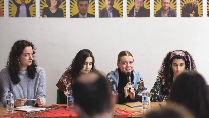 “30 Ocak’ta, Halklar Karavanı’ndan 28 diğer aktivistle birlikte Türk devleti tarafından gözaltına alındım. Kobanê’ye ulaşmak ve Rojava devrimine yönelik devam eden saldırılar hakkında farkındalık yaratmak amacıyla insani bir görevdeydik. Türk devleti, çeşitli açıklamalarda da belirtildiği gibi, Kobanê’ye sadece birkaç kilometre uzaklıktaki Suruç şehrinde bizi tutukladı. Ben de dahil olmak üzere birçok aktivist, cezaevinde kaldıkları süre boyunca işkence ve cinsel şiddete maruz kaldı. Almanya’ya sınır dışı edilmeden kısa bir süre önce, cezaevi gardiyanları tarafından cinsel saldırıya ve polis şiddetine uğradım. Benim deneyimimin, Türkiye’deki hapishanelerin duvarları arkasında siyasi tutukluların her gün yaşadıklarının sadece bir kısmı olduğunu biliyorum. Binlerce demokratik aktivist, devrimci ve gazeteci şu anda hapishanede, aralarında her gün tecavüze ve cinsel şiddete maruz kalan birçok kadın da var. Türk faşizmi, her türlü yolu kullanarak ataerkil sistemini sürdürmeye çalışıyor ve kadın cinayetlerinin ardından sokaklara dökülen kadınlar, devletin faşist aile politikalarını eleştiren ve Rojava’daki kadın devrimini her türlü yolla savunan kadınlar, bu sistem için özel bir tehdit oluşturuyor.