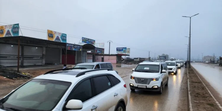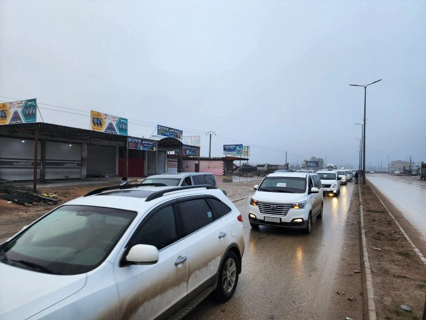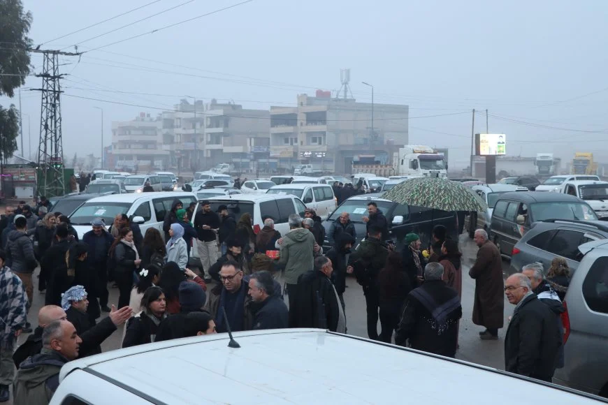 Burada bir araya gelen yurttaşlar, 100’ü aşkın araçtan oluşan bir konvoy oluşturarak direniş sloganları eşliğinde Hesekê’ye doğru hareket etti.