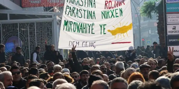 Êlih’te Yılmaz Güney Parkı’nda açıklama gerçekleştirildi.” Rojava vicdandır, direniştir, özgürlüktür, teslim alınamaz” pankartının açıldığı açıklamayı DEM Parti Gençlik Meclis üyesi Emir Taynan yaptı. Açıklamanın ardından binlerce kişi Yılmaz Güney Parkından DEM Parti İl Örgütü binasına kadar “Bîji Berxedana Rojava”, “Bîji berxwedana gelê Kûrd”, “Katil Colani”, “Her der Rojava her der berxwedan” ve “Bîji Serok Apo” sloganlarıyla yürüdü.