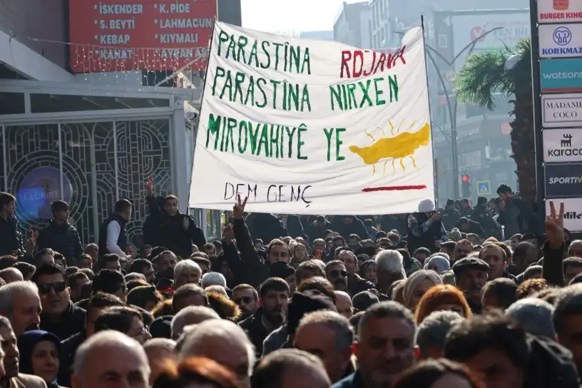 Êlih’te Yılmaz Güney Parkı’nda açıklama gerçekleştirildi.” Rojava vicdandır, direniştir, özgürlüktür, teslim alınamaz” pankartının açıldığı açıklamayı DEM Parti Gençlik Meclis üyesi Emir Taynan yaptı. Açıklamanın ardından binlerce kişi Yılmaz Güney Parkından DEM Parti İl Örgütü binasına kadar “Bîji Berxedana Rojava”, “Bîji berxwedana gelê Kûrd”, “Katil Colani”, “Her der Rojava her der berxwedan” ve “Bîji Serok Apo” sloganlarıyla yürüdü.