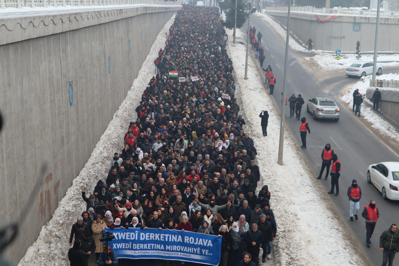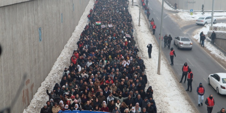 Geçici Suriye hükümetinin Kürtlerin yoğunluklu yaşadığı Halep’in Şêxmaqsûd ve Eşrefîyê mahallelerine yönelik saldırılarına karşı Kürt halkı ve halklar sokaklara çıktı. Gece boyunca birçok kentte gençler sokakları terk etmezken, bugün gün içinde ise her yerde halklar soykırım saldırılarına karşı alandaydı. Eylemlerin en kitlesel geçtiği kentlerden biri de Amed oldu. Son yılların en kitlesel eylemlerinden biri olan alanda halklar Kürtlerin yalnız olmadığını ve savaşa karşı duracaklarını ifade etti.