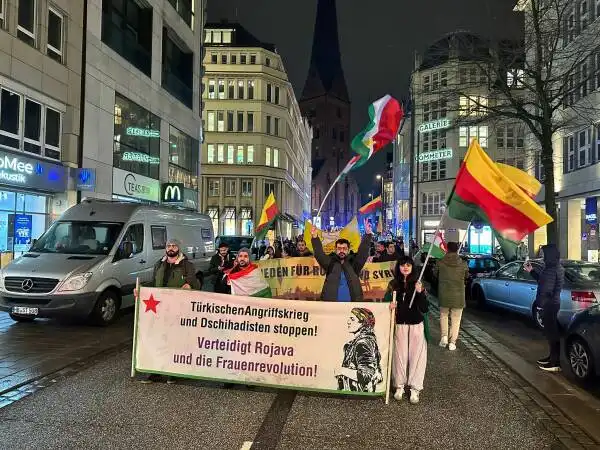 Almanya’nın Hamburg kentinde, Hamburg Tevgera Ciwanên Şoreşger (TCŞ) öncülüğünde bir protesto yürüyüşü düzenlendi. Eylemde, HTŞ ve SMO çetelerinin Halep’in Eşrefiyê ve Şêxmeqsûd mahallelerine yönelik saldırıları ile İran rejiminin halka dönük katliamları protesto edildi. Hamburg Demokratik Halk Meclisi, Rojbin Kadın Meclisi ve Alman enternasyonalistler de eyleme destek verdi.