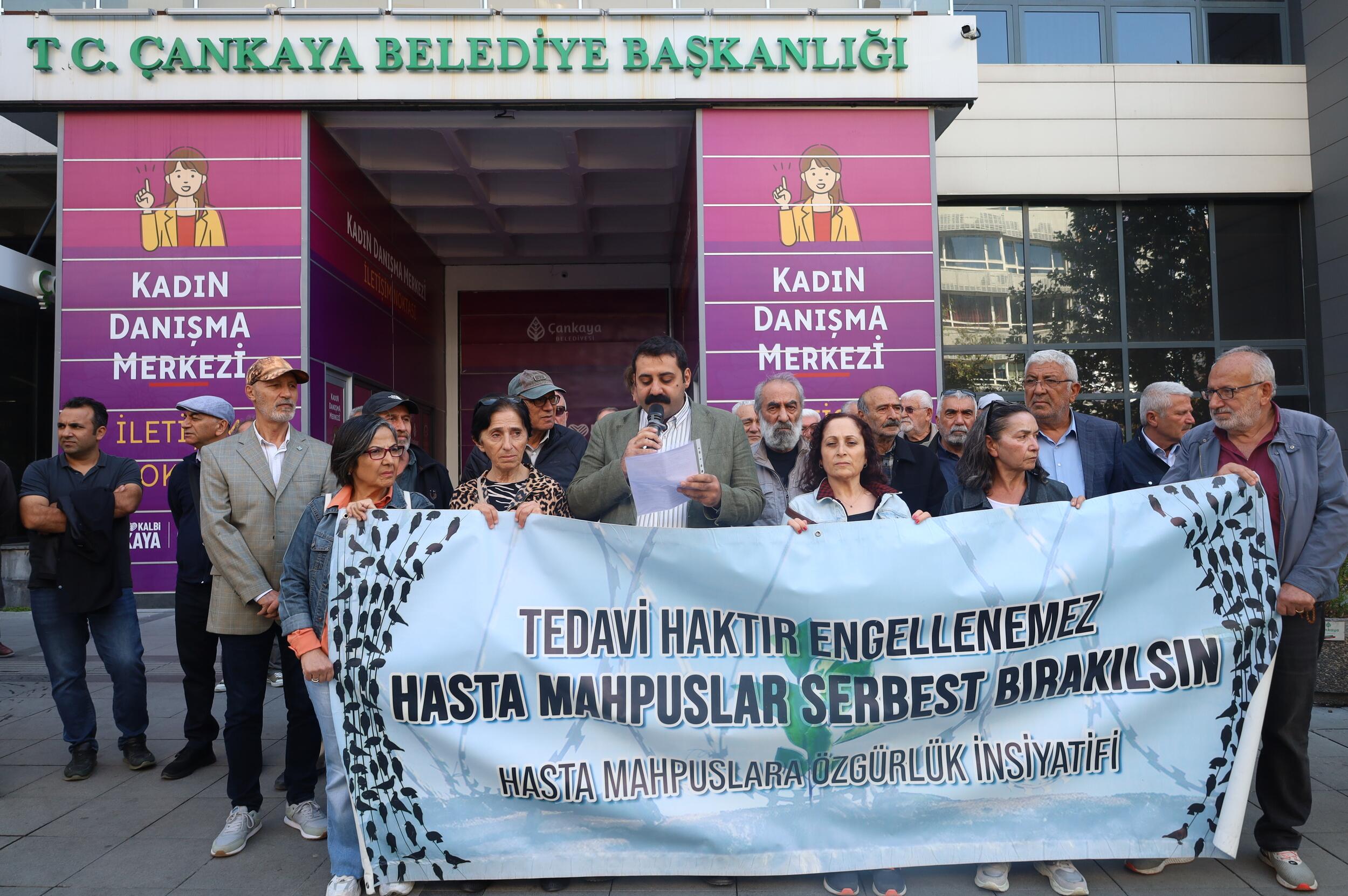 Ankara’da Hasta Tutsaklara Özgürlük İnisiyatifi, hasta tutsaklar ve cezaevlerindeki hak ihlalleri için 578’inci haftada bir araya geldi. Konuya ilişkin yapılan açıklamada sık sık “Tecrit işkencedir”, “Hasta mahpuslar serbest bırakılsın” sloganlarını attı. İnisiyatif, bu hafta Çarşamba S Tipi Cezaevi’nde tutsak Cengiz Sinan Halis Çelik’in sağlık durumuna dikkati çekti. Açıklamayı yapan İHD Ankara Şubesi Eş Başkanı Ömer Faruk Yazmacı yaptı.
