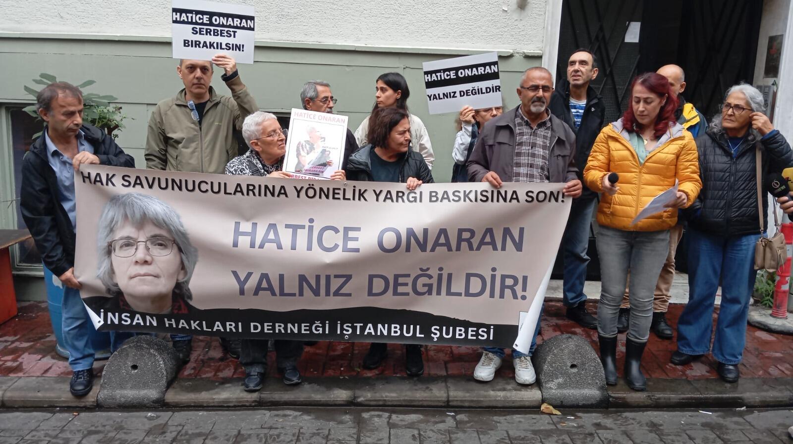 İnsan Hakları Derneği (İHD) İstanbul Şubesi, hasta tutsak üyeleri Hatice Onaran’a ilişkin açıklama yaptı. Şube binası önünde yapılan açıklamaya çok sayıda hak savunucusunun katıldı. Açıklamada, “Hak savunucularına yönelik yargı baskısına son! Hatice Onaran yalnız değildir” pankartı yer aldı, sık sık, “Hasta tutsaklar serbest bırakılsın” sloganı atıldı.