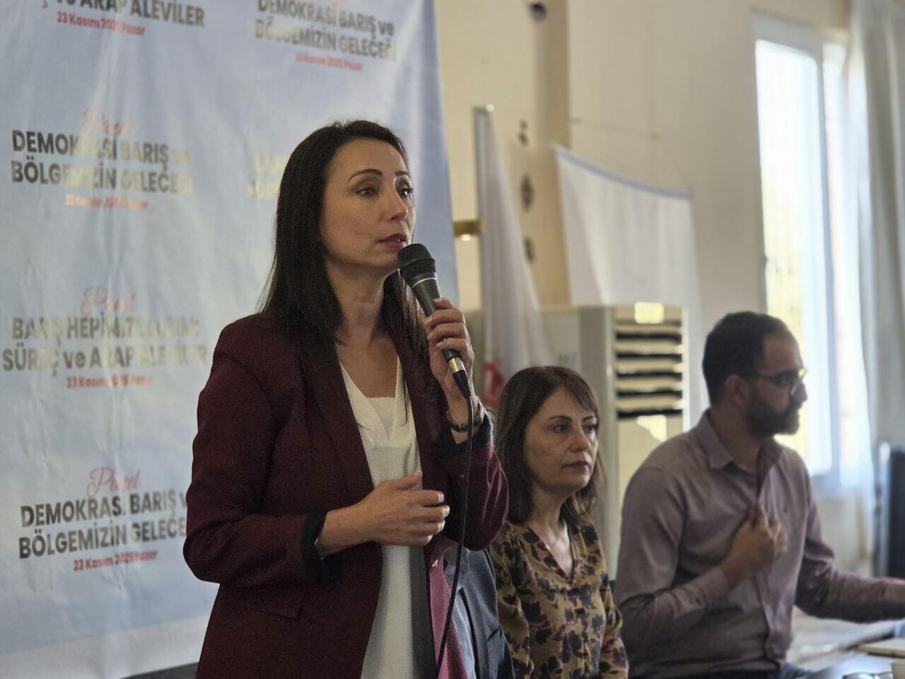 Halkların Eşitlik ve Demokrasi Partisi (DEM Parti), Sosyalist Yeniden Kuruluş Partisi (SYKP), Emek Partisi (EMEP) ve Sosyalist Demokrasi Platformu (SODAP) Hatay’ın Defne ilçesinde düzenlediği “Demokrasi barış ve bölgemizin geleceği” panelinde katıldı. Harbiye Sosyal Yardımlaşma ve Dayanışma Derneği’nde (HASYAD) düzenlenen panelin ilk oturumunda Türkiye’nin demokratikleşme süreci, bölgesel barış dinamikleri ve Ortadoğu’daki siyasal atmosfer tartışıldı. DEM Parti Eş Genel Başkanı Tülay Hatimoğulları panelde düzenlediği sunumda, Meclis’te kurulan komisyonun Kürt Halk Önderi Abdullah Öcalan’la görüşme kararına işaret etti. Komisyona CHP ve Yeni Yol’un üye vermemesini eleştiren Tülay Hatimoğulları, “Komisyonun oybirliğiyle karar almasını isterdik. CHP’nin gitmemesini eksiklik olarak görüyoruz. Hala fikir değişikliğini umuyoruz” dedi.