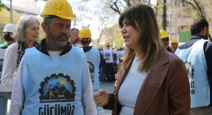 Maden işçilerinin direnişini ziyaret eden Halkların Demokratik Kongresi (HDK) Eşsözcüsü Meral Danış Beştaş, işçilerin alın terleri karşısında patronların bu emeğe el koymasının hukuksuzluk olduğunu söyledi. Madencilerin direnişini selamlayan Meral Danış Beştaş, manipülasyonlara karşı direnen madencilerin yanında olduklarını söyledi.