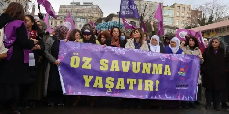 Halkların Demokratik Kongresi (HDK) Kadın Meclisi, “Özsavunma yaşatır deklarasyonunu İstanbul Şişhane Meydanı’nda gerçekleştirdi.