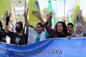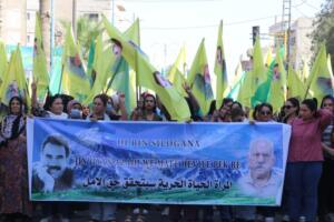 Hesekê’de yüzlerce kadın, düzenlenen yürüyüşte bir araya geldi. Kadınlar, Abdullah Öcalan’a ‘Umut hakkı’nın tanınmasını, tecridin son bulmasını istedi