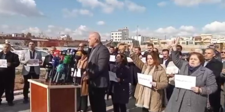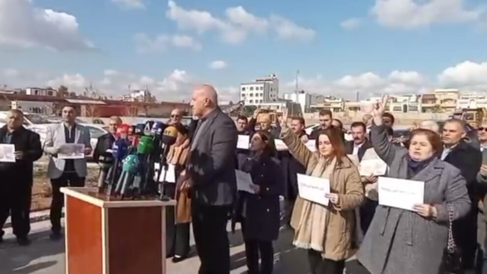 Federe Kürdistan’ın Hewlêr kentinde bulunan Amerika Büyükelçiliği önünde bir araya gelen onlarca yurttaş Türkiye’nin desteklediği HTŞ ve DAİŞ çetelerinin Rojava’ya yönelik saldırılarını protesto etti.