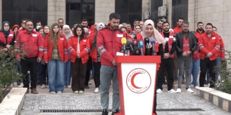 Heyva Sor a Kurd, Suriye Geçici Hükümetine bağlı çeteler tarafından 6 Ocak’taki saldırılar sırasında Halep’in Şêxmeqsûd ve Eşrefiyê mahallelerinde kaçırılan 3 üyesine ilişkin bir açıklama yaptı. Açıklama, Qamişlo kentinde bulunan Heyva Sor a Kurd Genel Merkezi önünde yapıldı. Açıklama Kürtçe olarak Heyva Sor a Kurd Eşbaşkanı Hediya Yûsif ile Heyva Sor a Kurd üyesi Bawer Çolî tarafından okundu.