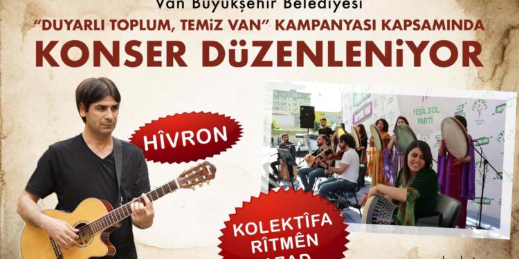 Wan Büyükşehir Belediyesi’nin “Duyarlı Toplum, Temiz Van” sloganıyla başlattığı temizlik seferberliği kampanyası, çeşitli etkinliklerle sürdürülüyor. Kampanya kapsamında, Edremit Kent Meydanı’nda Kolektifa Rîtmên Azad ve Hîvron’un sahne alacağı bir konser düzenlenecek.