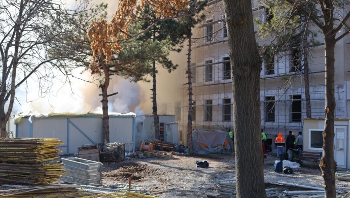 Ankara’nın Çankaya ilçesine bağlı Atatürk Bulvarı üzerinde bulunan İçişleri Bakanlığı’na bağlı inşaat halindeki Ek Hizmet Binası’ndaki inşaat işçilerinin kaldığı konteynırlarda yangın çıktı.