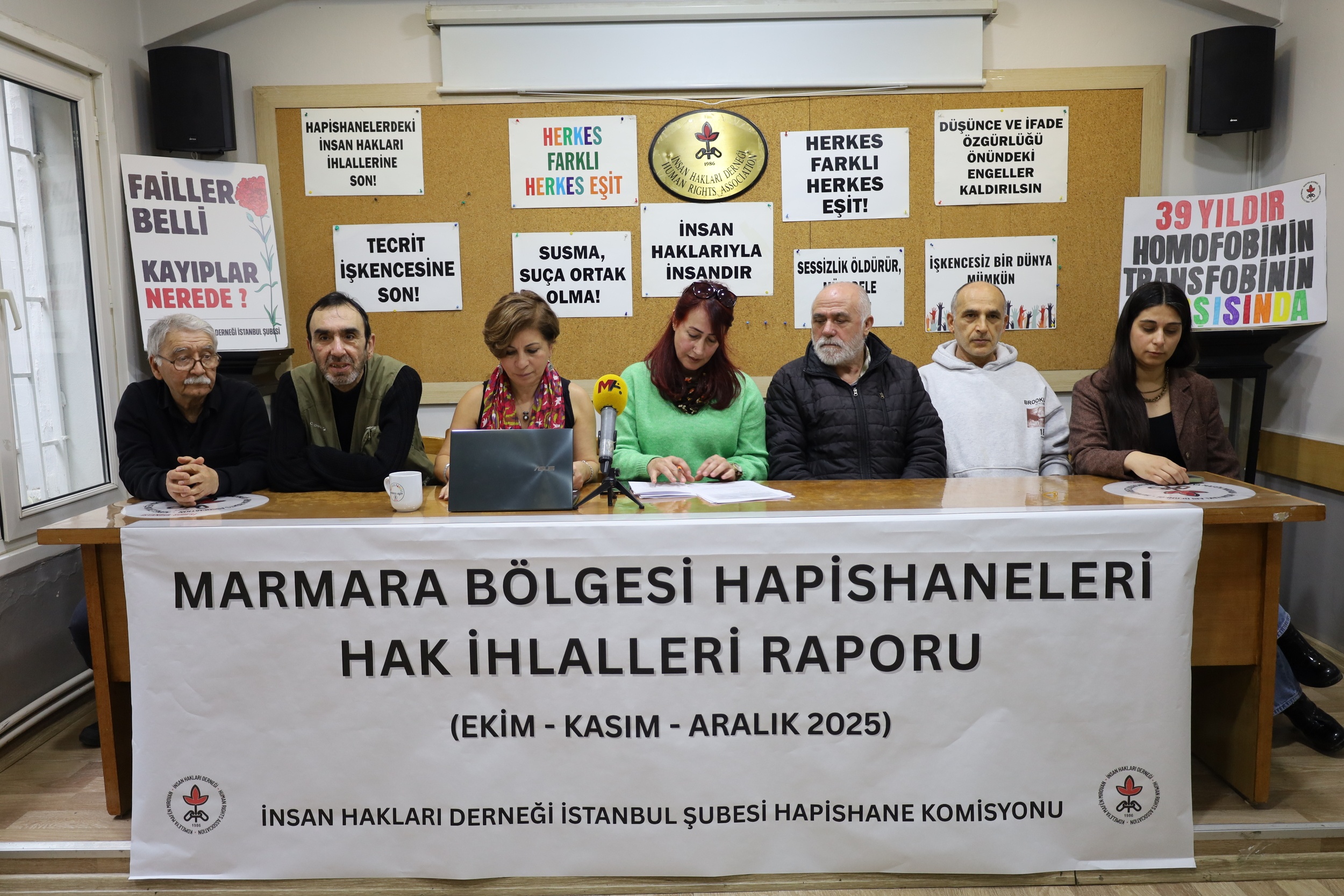 İnsan Hakları Derneği (İHD) İstanbul Şubesi Hapishane Komisyonu, Ekim, Kasım, Aralık ayını kapsayan “Marmara Bölgesi Hapishaneleri Hak İhlalleri Raporu”nu İstanbul Beyoğlu’nda bulunan dernek binalarında yapılan basın toplantısıyla açıkladı. Çok sayıda kişinin katıldığı toplantıda, raporu İHD Merkez Yürütme Kurulu (MYK) üyesi Gülseren Yoleri ve İHD Hapishane Komisyonu üyesi Meral Nergis Şahin okudu.