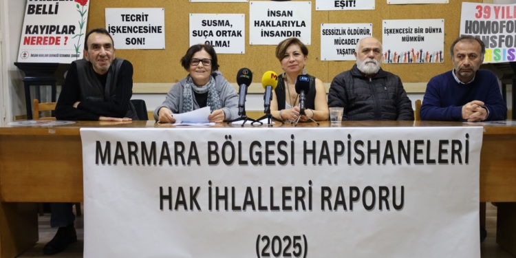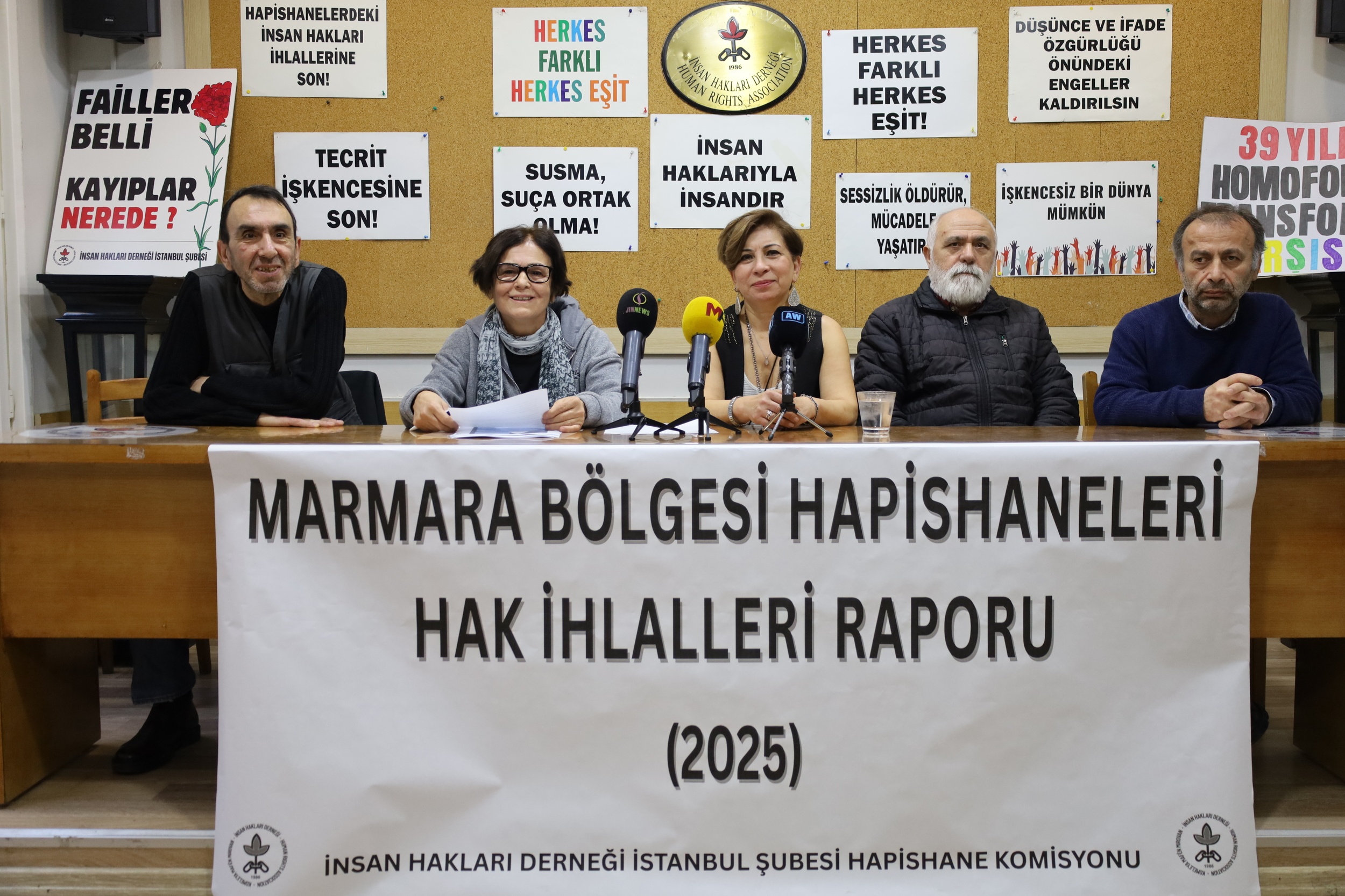 İnsan Hakları Derneği (İHD) İstanbul Şubesi Hapishane Komisyonu, 2025 yılı “Marmara Bölgesi Hapishaneleri Hak İhlalleri Raporu”nu açıkladı. Raporu, dernek binasında yapılan toplantıda, İHD İstanbul Şubesi Hapishane Komisyonu Üyesi Semiray Yılmaz ve İHD Merkez Yürütme Kurulu (MYK) Üyesi Gülseren Yoleri açıkladı.