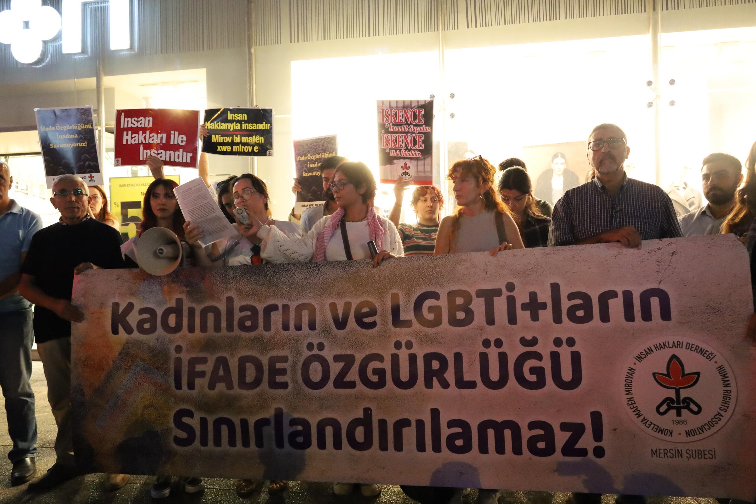 Açıklamayı okuyan İHD Mersin Şube Eşbaşkanı Zeynep Kaya, kadınlara yönelik polis müdahalesini “insan onuruna aykırı, cinsiyet temelli ve hukuka aykırı” olarak nitelendirdi. Zeynep Kaya, eylem sırasında çok sayıda kadının itilmeye, vurulmaya, boğaz sıkmaya ve keyfi gözaltı girişimlerine maruz kaldığını belirterek, “Bazı kadın polislerin kadın eylemcilere yönelik meme bölgesine yönelen fiziksel müdahaleleri, kadın ve LGBTİ+ bedeni üzerinde tahakküm kurma girişimidir” dedi.