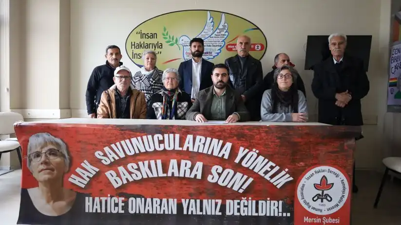 İnsan Hakları Derneği (İHD) Mersin Şubesi, hasta tutsak üyeleri Hatice Onaran’a ilişkin açıklama yaptı. Dernek binasındaki Konferans Salonu’nda  yapılan açıklamaya Şube Eşbaşkanı Gazi inci ve yöneticiler katılırken  “Hak sunucularına yönelik baskılara son Hatice Oran” yalnız değildir yazlı pankart açtı. Metni  Mersin İHD Hapishane Komisyonu Sözcüsü Muammer Derince, okudu.