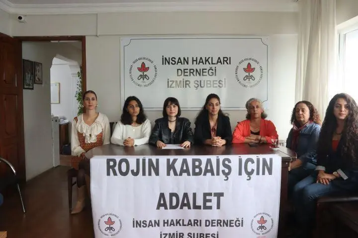 İzmir’de ise İHD şube binasında düzenlenen açıklamada, “Van Yüzüncü Yıl Üniversitesinde öğrenci olan Rojin Kabaiş, kalmış olduğu KYK yurdundan 27 Eylül 2024 günü çıktıktan sonra kayboldu. Akabinde sürdürülen arama-kurtarma çalışmalarıyla birlikte cansız bedenine 15 Ekim 2024 günü Molla Kasım sahilinde ulaşıldı. Rojin Kabaiş’in dosyası, tıpkı benzer kadın ölümlerinde olduğu gibi 1 yıldır sürüncemede bırakılmıştır. Dosyanın sürüncemede bırakılmasına gerekçe olarak “intihar” şüphesi öne sürülmüş, bu değerlendirme soruşturmayı daraltan ve olası fail ya da faillerin korunmasına yol açan bir yaklaşım haline getirilmiştir. Bu tutum, cezasızlık politikasının bir sonucu olarak şüpheli ölüm dosyalarının etkili biçimde soruşturulmamasına ve olası faillerin yargı denetiminden uzak bir şekilde toplum içinde dolaşmaya devam etmesine neden olmaktadır. Adli Tıp Kurumu, bu coğrafyada hem devlet suçlarının örtbas edilmesinde hem de erkek faillerin aklanmasında tek resmi delil merkezi olarak işlev görmektedir. Bu durum, dosyanın bir yıldan fazla süredir sonuçlanamamasının yanı sıra, kadınların adalete erişimini de sistematik olarak engellemektedir” denildi.