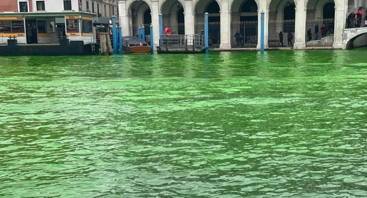 Extinction Rebellion (Yok oluş İsyanı) grubuna bağlı aktivistler, kentin simgelerinden Rialto Köprüsü’nün üzerinden Büyük Kanal’a parlak yeşil renkte bir sıvı döktü. Kentin en yoğun turist trafiğine sahip noktalarından birinde gerçekleşen eylem, hem şehir sakinlerinin hem de ziyaretçilerin dikkatini çekti.