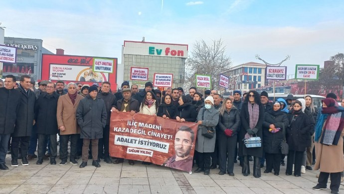 Adliye önünde yapılan açıklamada, faciada hayatını kaybeden işçilerden Uğur Yıldız’ın babası Ali Ekber Yıldız, mahkeme heyetine seslenerek şunları söyledi:
