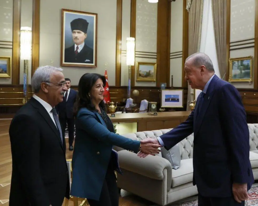 İmralı Heyeti üyeleri ile Erdoğan görüşmesi Beştepe’de başladı. Görüşmede AKP Genel Başkan Vekili Efkan Ala, Milli İstihbarat Teşkilatı Başkanı İbrahim Kalın da yer aldı.