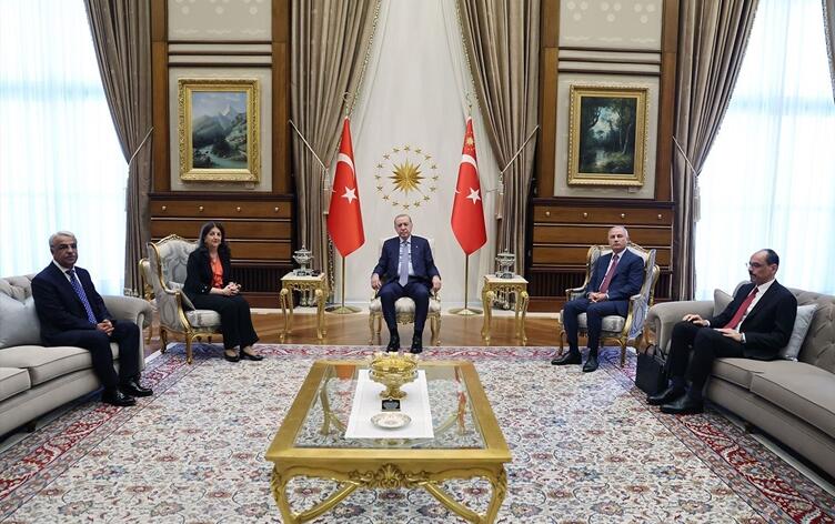 İmralı Heyeti üyeleri ile Erdoğan görüşmesi Beştepe’de başladı. Görüşmede AKP Genel Başkan Vekili Efkan Ala, Milli İstihbarat Teşkilatı Başkanı İbrahim Kalın da yer aldı.
