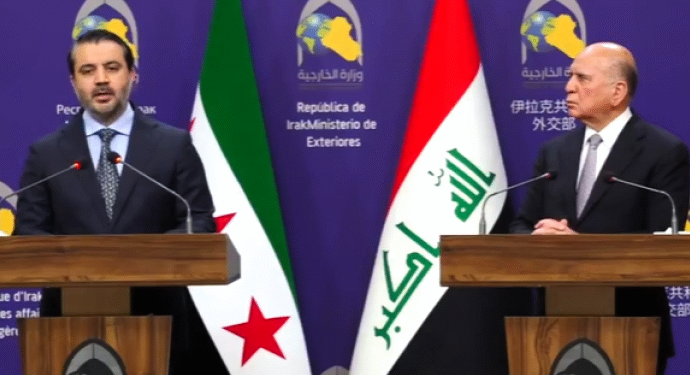 Suriye geçici hükümeti Dışişleri Bakanı Eshed Şebani, Irak’a gerçekleştirdiği resmi ziyaret kapsamında Irak Dışişleri Bakanı Fuad Hüseyin bir araya gelerek ortak basın toplantısı düzenledi.